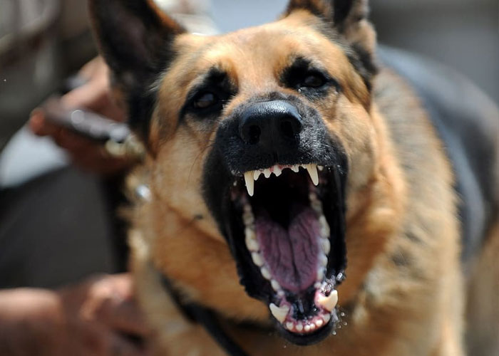 If a guard dog comes at you, look to one side and slowly turn around. Then walk away.